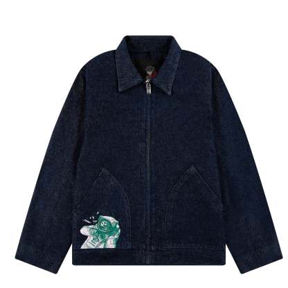 100% washed cotton/ embroidered pocket design/ manufactured in our own factory/ heavy zipper/ fits true to size
