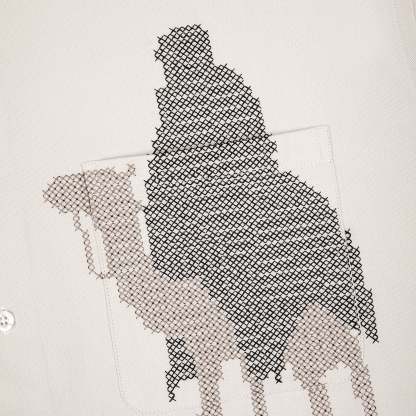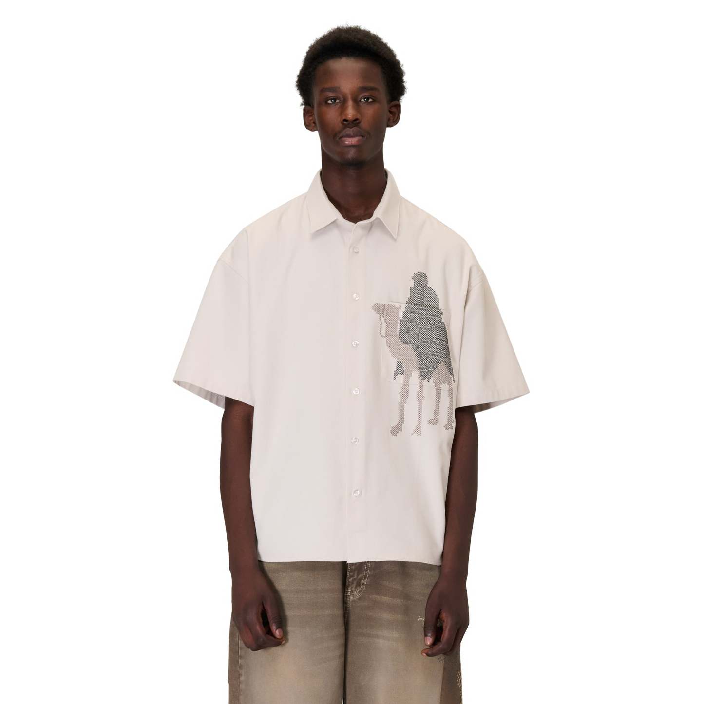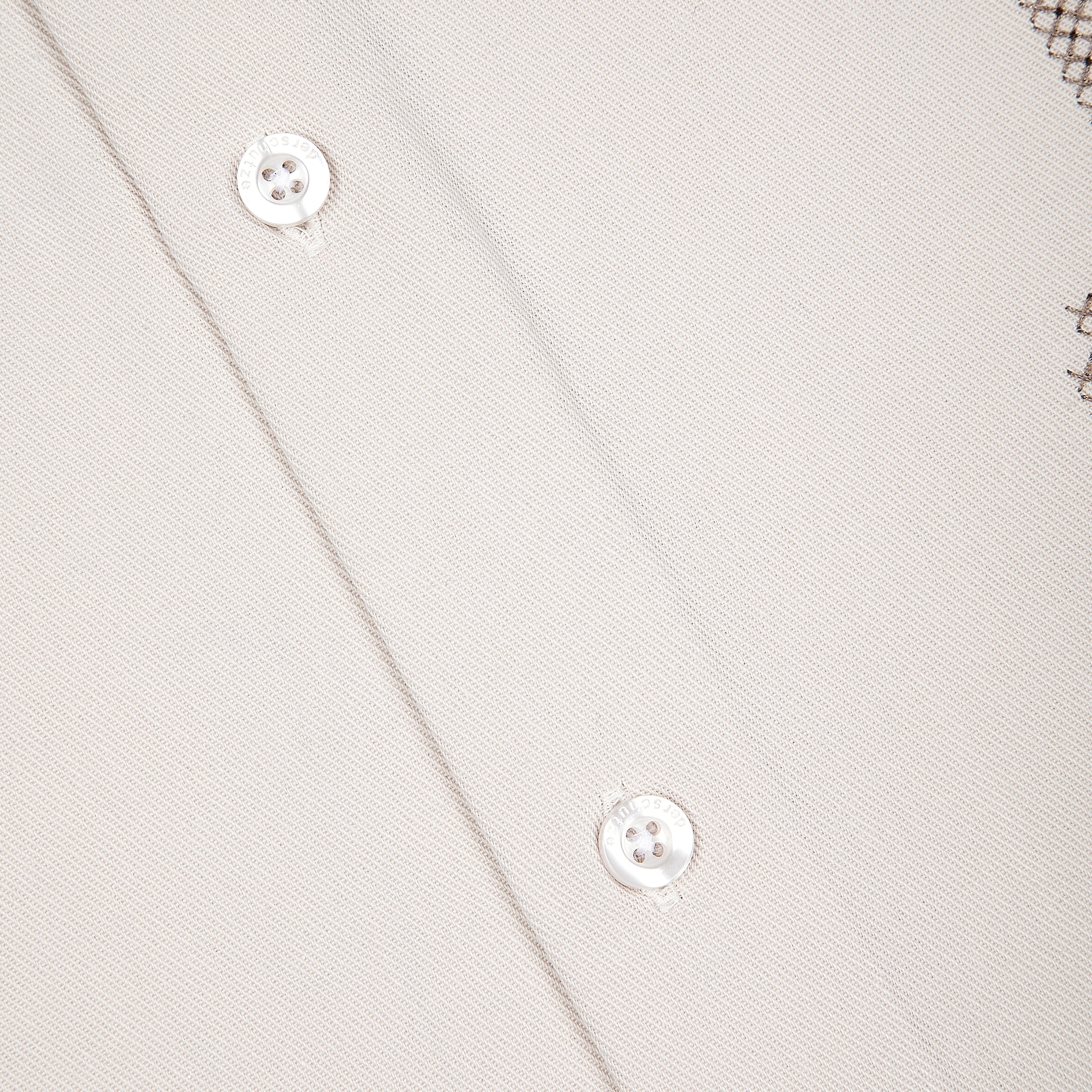 gabardine fabric / 100% cotton / embroidery on front / custom buttons / curved hem / relaxed fit / fits true to size