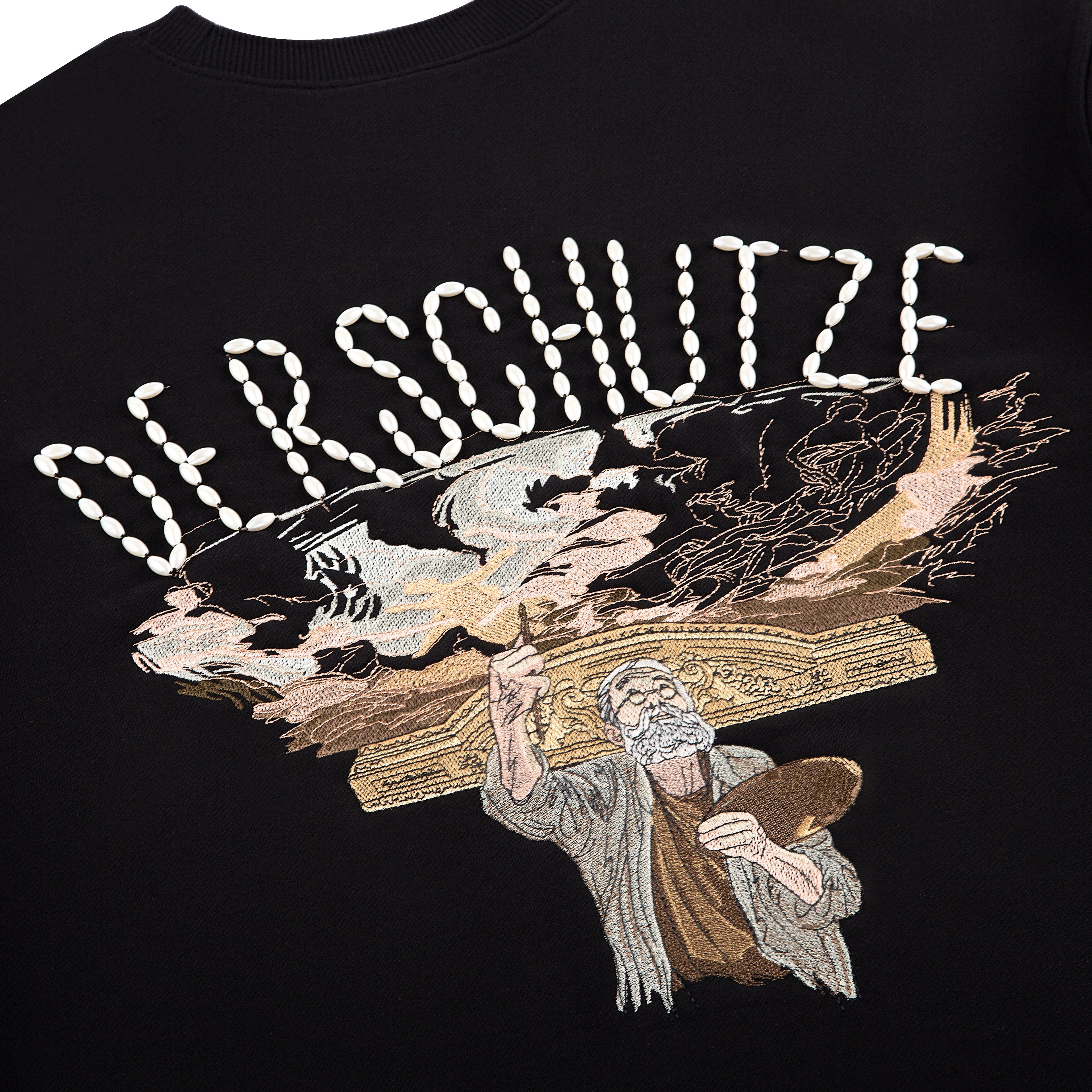 480gsm/ 100% preshrunk cotton/ embroidery on back/ fully hand embroidered pearl detail/ fits true to size