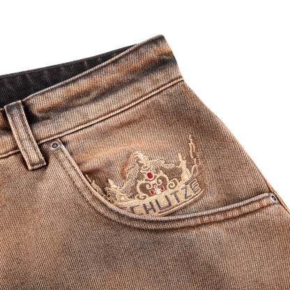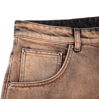 14,5oz denim/ 100% cotton/ embroidery on front and back pocket/ bronze fade/ baggy fit