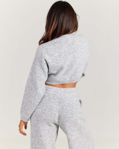 - Grey Intarsia knitted logo on left chest.