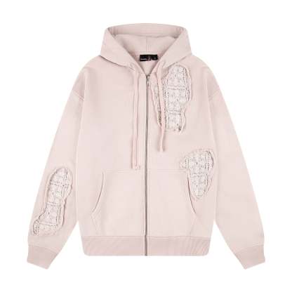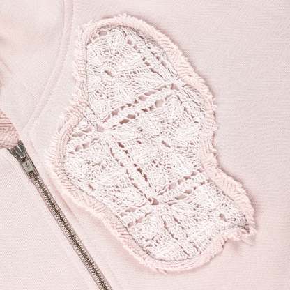 480gsm French terry / 100% preshrunk cotton / washed effect / embedded crochet detailing / embroidery on back / YKK Zipper/ fits true to size