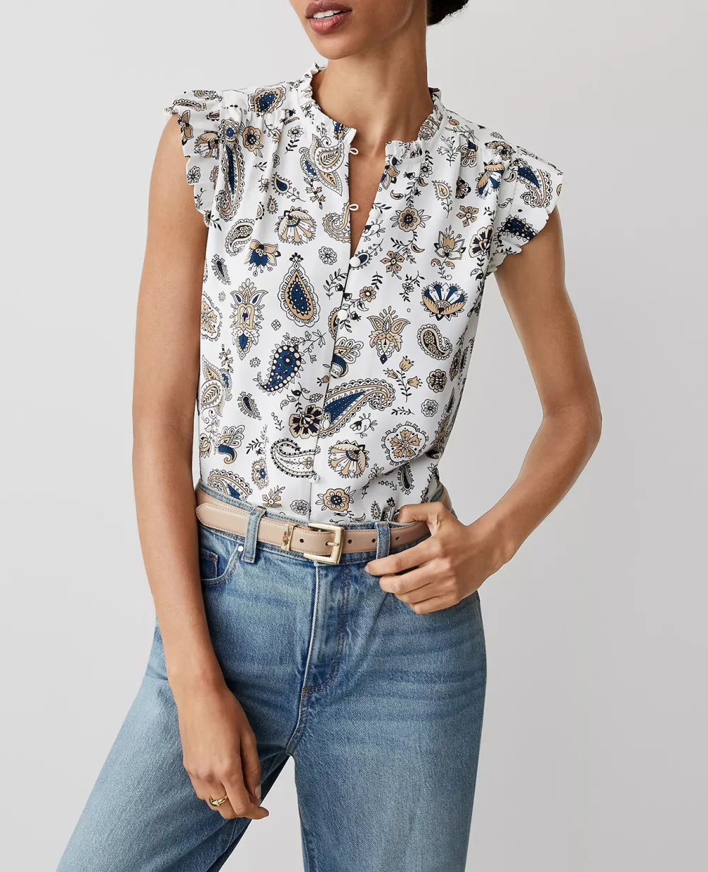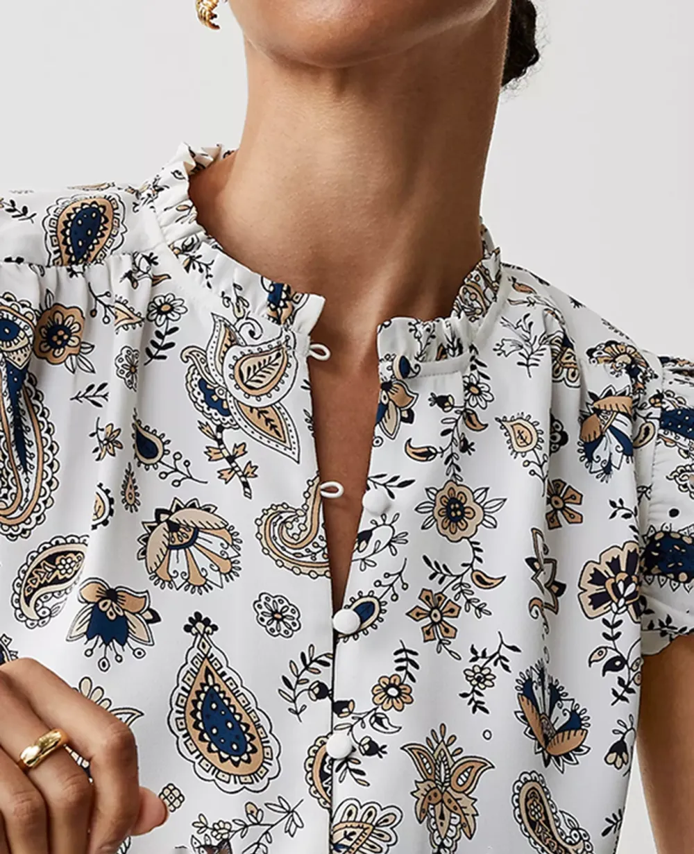Paisley Mixed Media Ruffle Shell