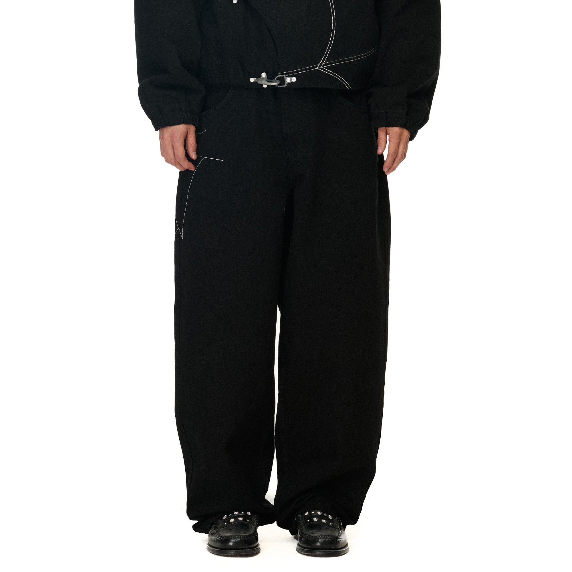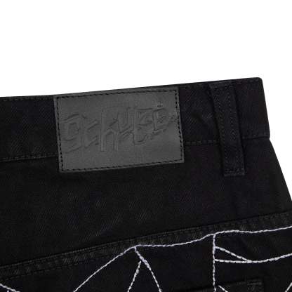 14,5oz raw denim / 100% cotton / embroidery on front and back / embossed printed leather patch / wash inside out / fits true to size