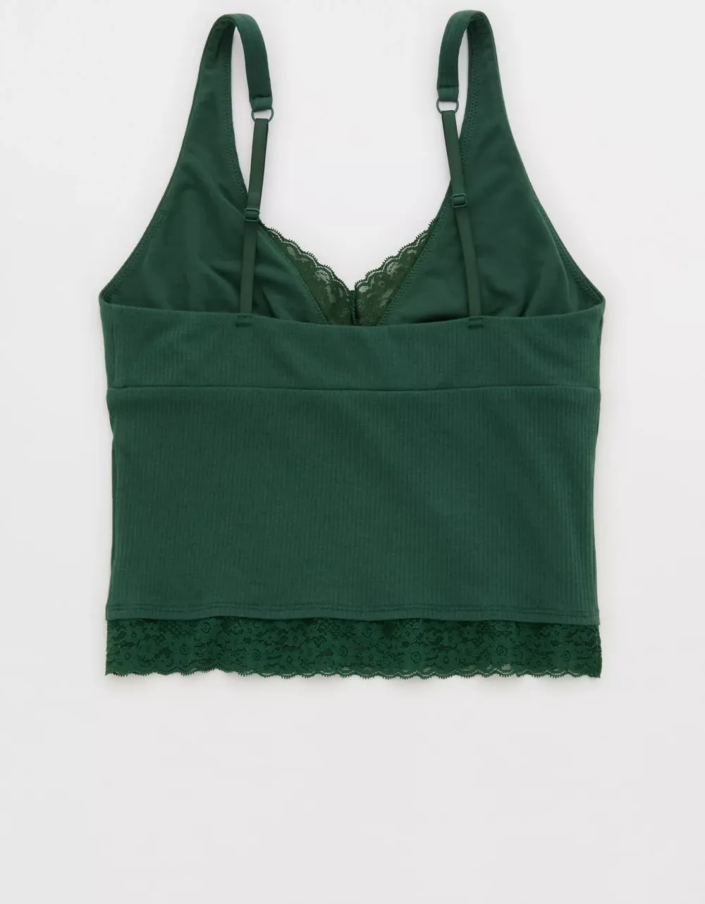 - Textured, ribbed cotton with Vintage Lace trim in a plunge tank top silhouette.